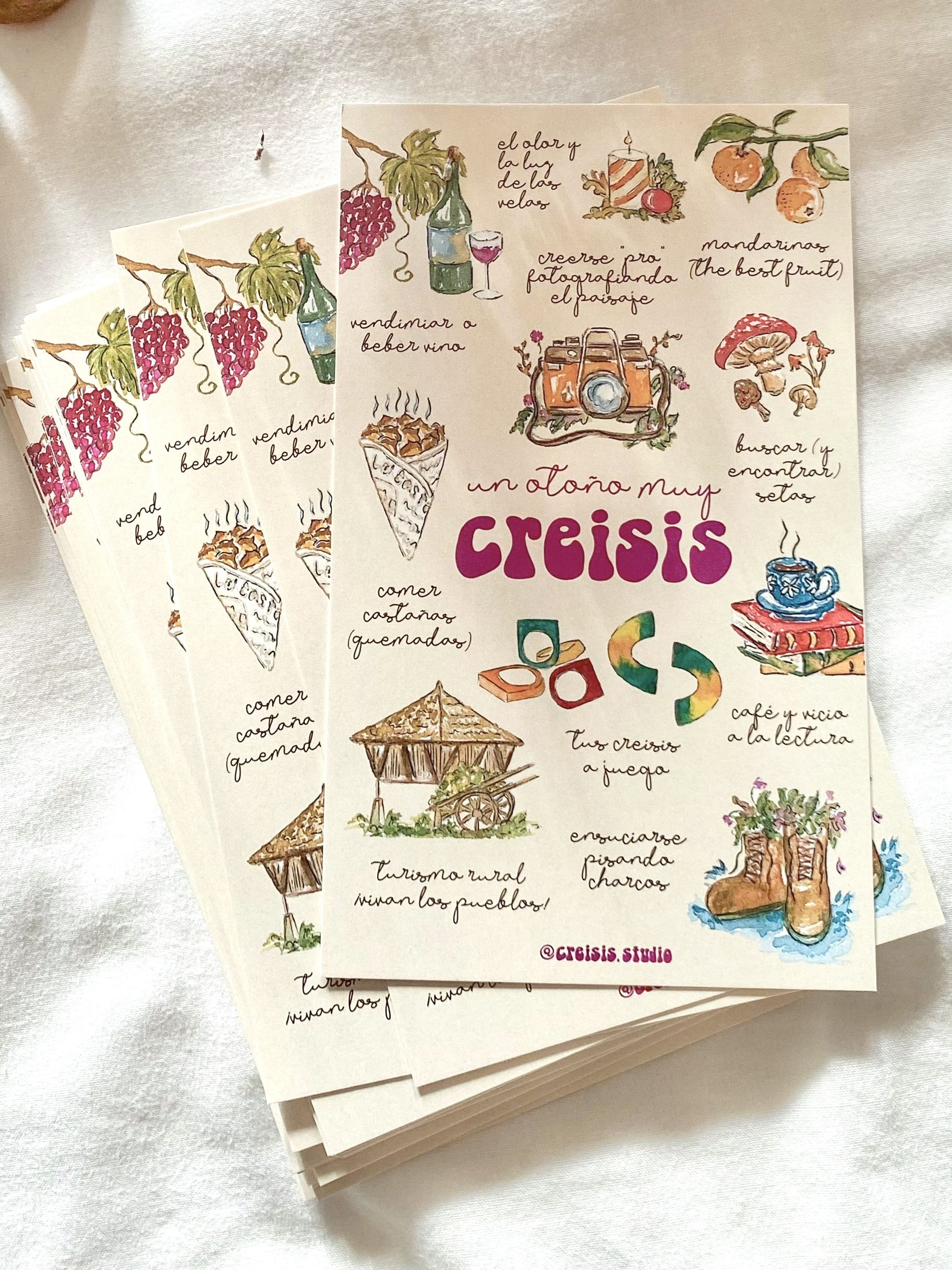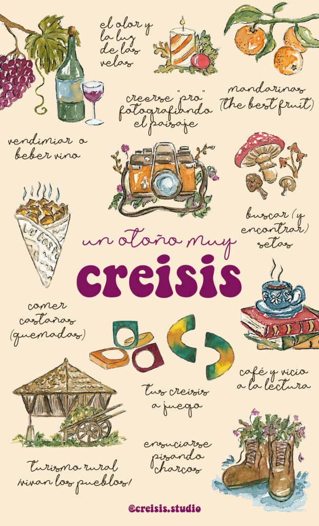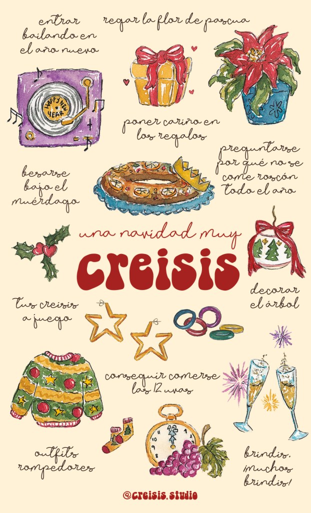 Creisis Studio is a jewelry brand founded by Cristina Solana, whose name playfully combines “crazy” and “Cris.” For this project, I created a series of illustrated seasonal campaigns—autumn, winter, and Christmas—each built around a list of ten charming and relatable moments tied to the season.